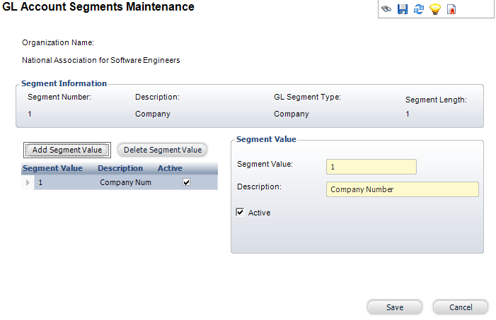 | Add Segment Value | Button. When clicked, a segment value is added to the organization. |
