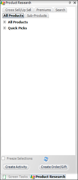 · All Products: this tab displays two tree views: All Products and Quick Picks.