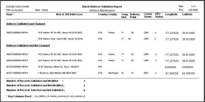 · Address Validation Report – Lists the addresses modified by the Spectrum software alongside their original addresses. Optionally, it can also include all addresses reviewed by the batch job but not modified.