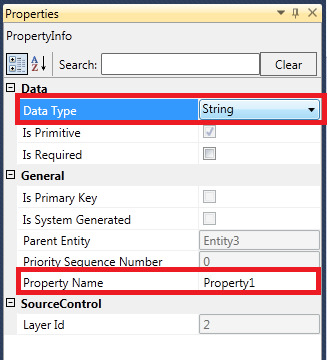 c. Click on each property and on the Properties Pane, specify the appropriate Property Name.