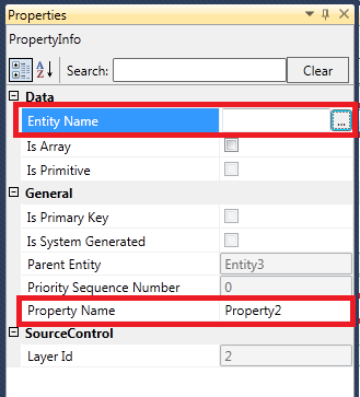 2. On the Properties Pane, specify the appropriate Entity name and Entity Set name.