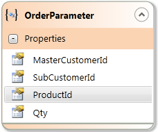Service Parameters adopt the “orange” theme with entity enclose in parentheses icon and contain the following expandable/collapsible groups: