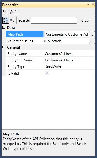 The Personify WSD Properties pane is resizable, floatable and dockable, similar to Visual Studio. The Properties pane displays the attributes of the element (entity, property, association, or service operation) selected on the canvass.